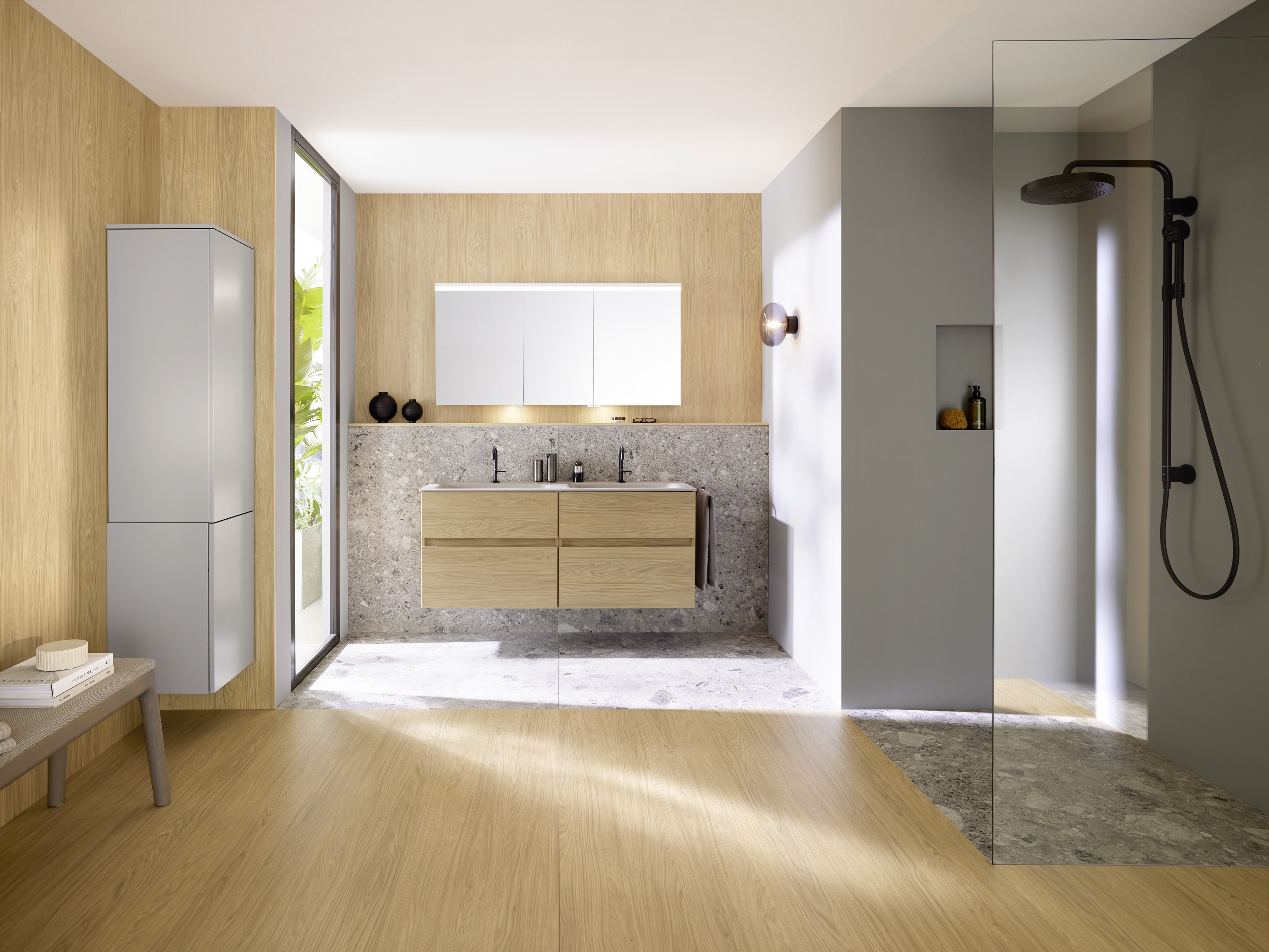 Die Keramiken gab es bisher nur in Weiß Alpin, das Programm wurde jetzt um Keramiken und Armaturen in schwarz, matt erweitert. Ebenso gibt es ganz neu Badmöbel mit einer grauen Oberfläche. Damit ergeben sich noch mehr Kombinationen und Einbauvarianten, die die Individualität Ihres neuen Badezimmers unterstreichen.